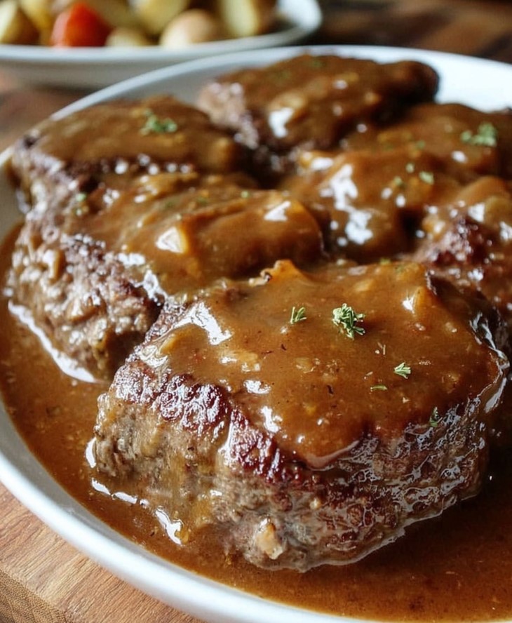 - 🍽️ Comforting classic: Rich gravy and juicy beef patties make it feel like a warm hug on a plate.