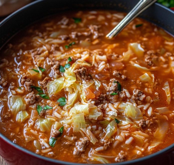This soup balances multiple textures and flavors. Soft cabbage leaves, tender meat, and perfectly cooked rice combine with aromatic vegetables and a subtly seasoned broth. A splash of tomato adds richness and depth, while optional herbs like parsley enhance freshness and visual appeal. Golumpki Soup is also highly adaptable — it can be customized with different proteins, additional vegetables, or spices to suit dietary preferences.