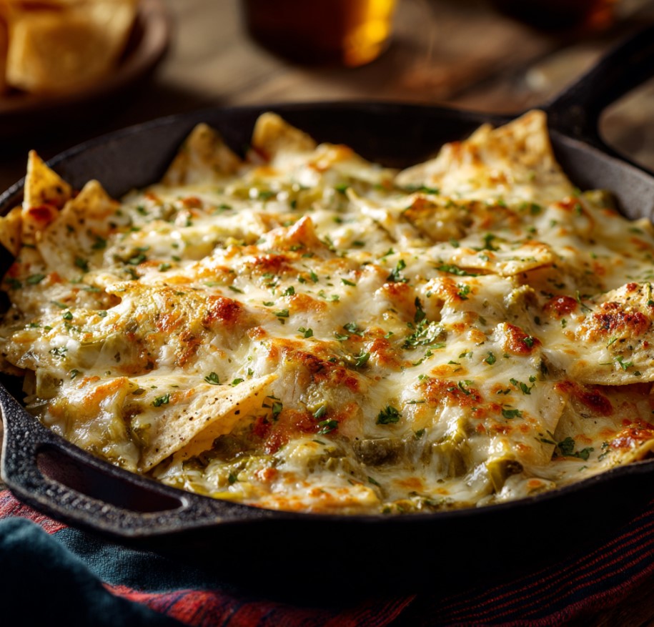 Let the cheese melt completely, about 3–5 minutes. You’re looking for a luscious, gooey cheese layer that blankets the chips like a warm comfort hug.