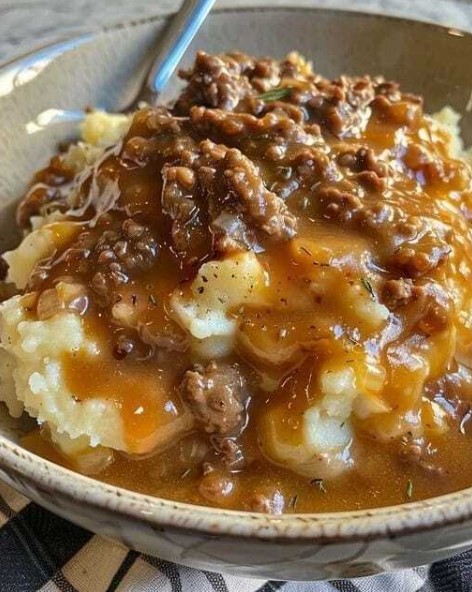 Mashed potatoes with ground beef gravy is the ultimate comfort food — simple, filling, and deeply satisfying. Creamy, buttery mashed potatoes are topped with a rich, savory gravy made from seasoned ground beef and onions, creating a meal that feels like home. It’s perfect for busy weeknights, cozy family dinners, or anytime you’re craving something warm and comforting.