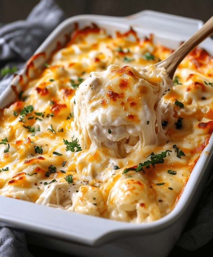 The first time you make it, you might think it’s just another chicken bake. But once it comes out of the oven—bubbling, golden, creamy, and topped with a buttery crunch—you’ll understand why this dish has become a favorite in so many households. It’s the kind of recipe people request again and again, whether it’s for a weeknight dinner, potluck, or family gathering.