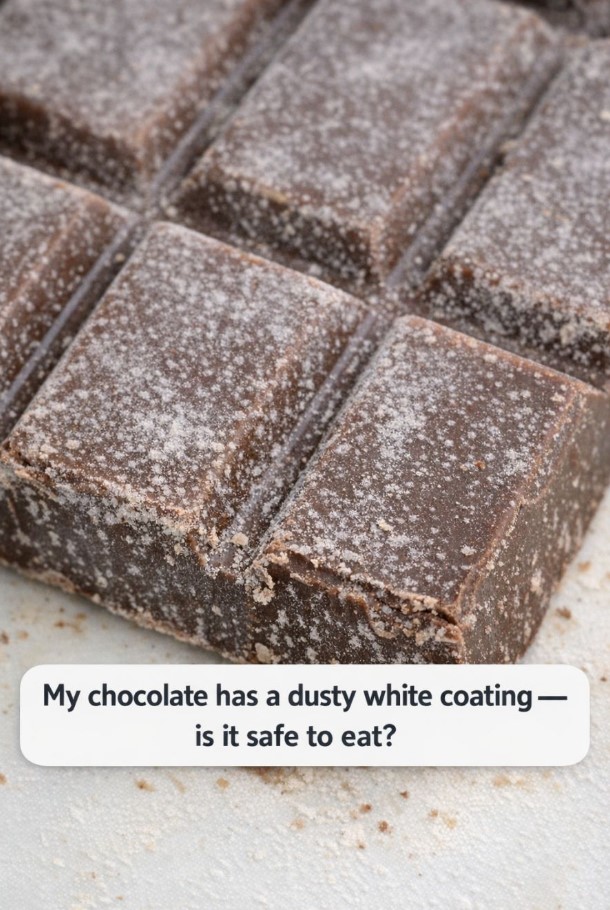 - What causes the dusty white coating on chocolate