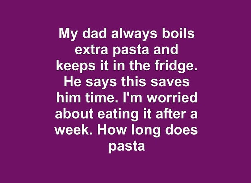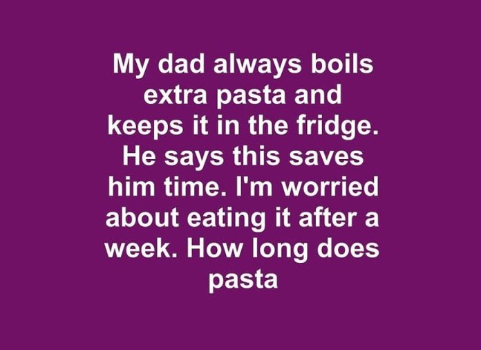 My dad always boils extra pasta and keeps it in the fridge. He says this saves him time. I’m worried about eating it after a week. How long does pasta last in the fridge anyway?