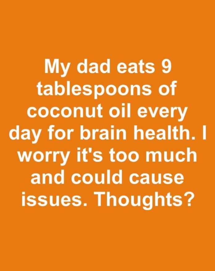 My dad eats 9 tablespoons of coconut oil every day for brain health. I worry it’s too much and could cause issues. Thoughts?