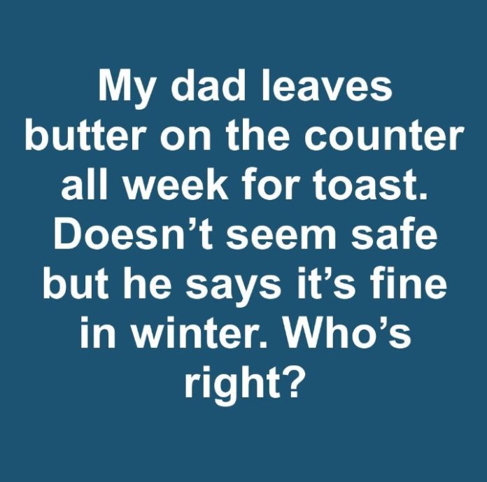 Some people insist that butter must always be refrigerated to stay safe, while others—like your dad—prefer keeping it out for easy spreading, especially during colder months. After all, no one enjoys tearing bread with a hard, cold block of butter.