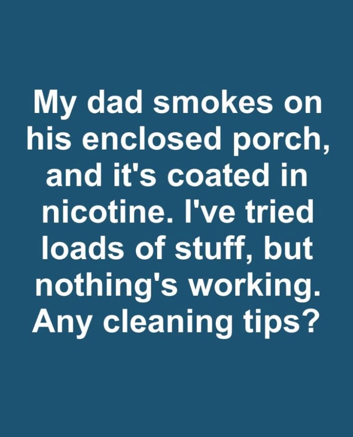 My Dad Smokes on His Enclosed Porch and It’s Coated in Nicotine — I’ve Tried Loads of Stuff but Nothing’s Working. Any Cleaning Tips?