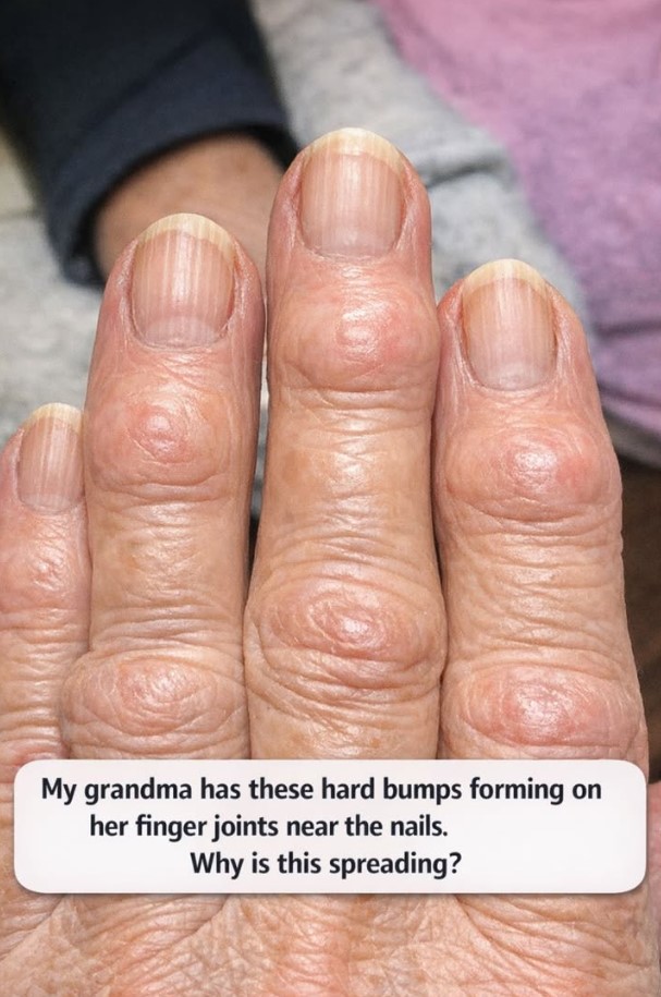 My grandma has these hard bumps forming on her finger joints near the nails. Why is this spreading?