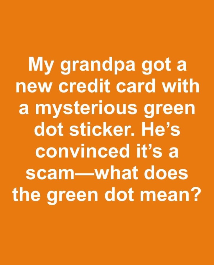There’s no widespread evidence that a green dot sticker on a credit card is used as part of a scam.