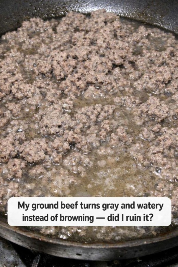 My ground beef turns gray and watery instead of browning — did I ruin it?