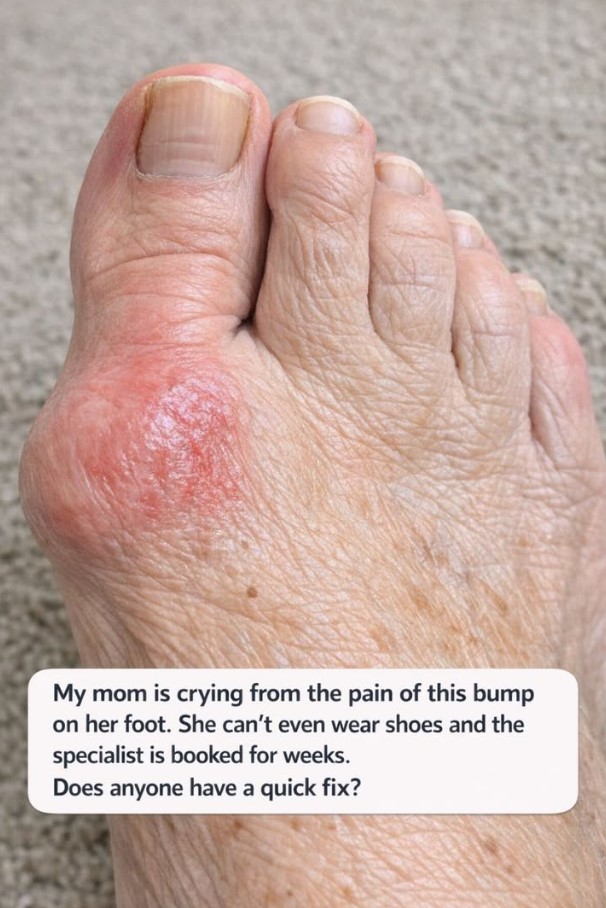 My mom is crying from the pain of this bump on her foot. She can’t even wear shoes and the specialist is booked for weeks. Does anyone have a quick fix?