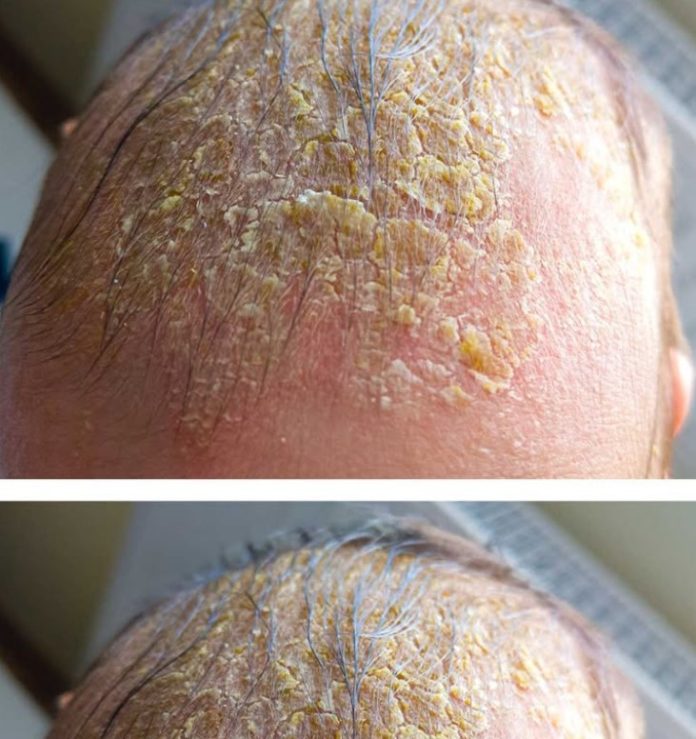When the scalp has a yellow, crusty, or oozing area that doesn’t heal quickly, it can come from several different skin conditions. Here are the most common: