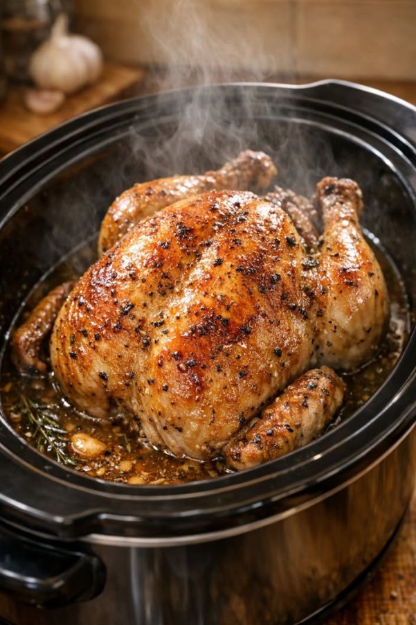 This slow cooker whole chicken is more than just dinner — it’s a reminder that great food doesn’t have to be complicated. With a slow cooker and a little patience, you can create a meal that’s rich in flavor, comforting in texture, and perfect for family dinners, Sunday gatherings, or whenever you want something nurturing on the table.
